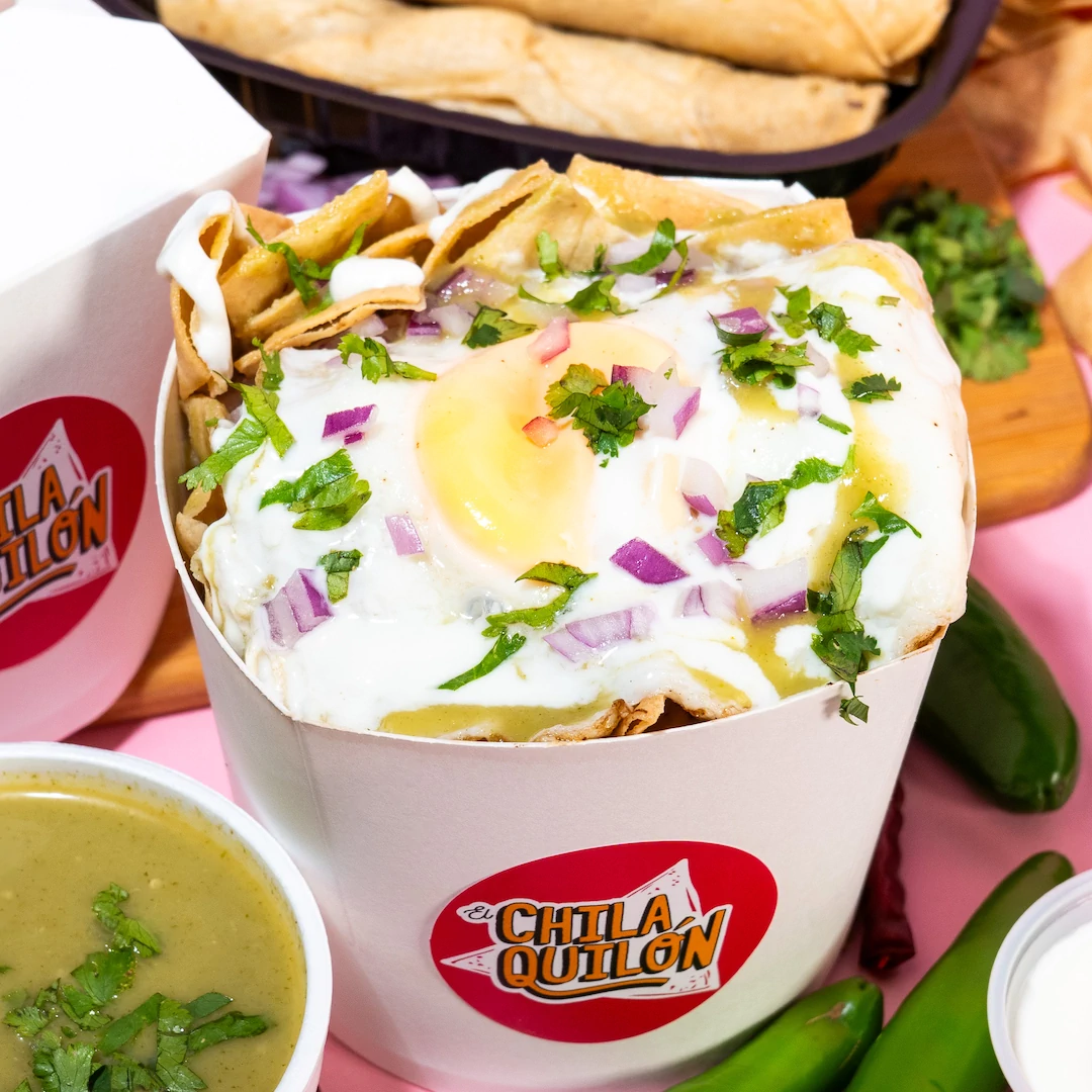 Medio litro de chilaquiles con nuestra salsa a la verde picosita, coronada con huevito estrellado, queso derretido, su cilantro, cebolla. lleva su crema a parte.